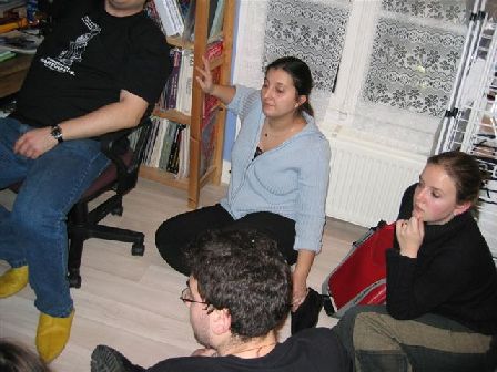 La discussion à côté continue. A voir la tête des participants, ce n'est pas très drôle.
